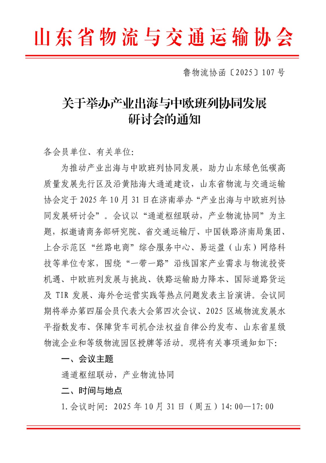 关于举办产业出海与中欧班列协同发展研讨会的通知