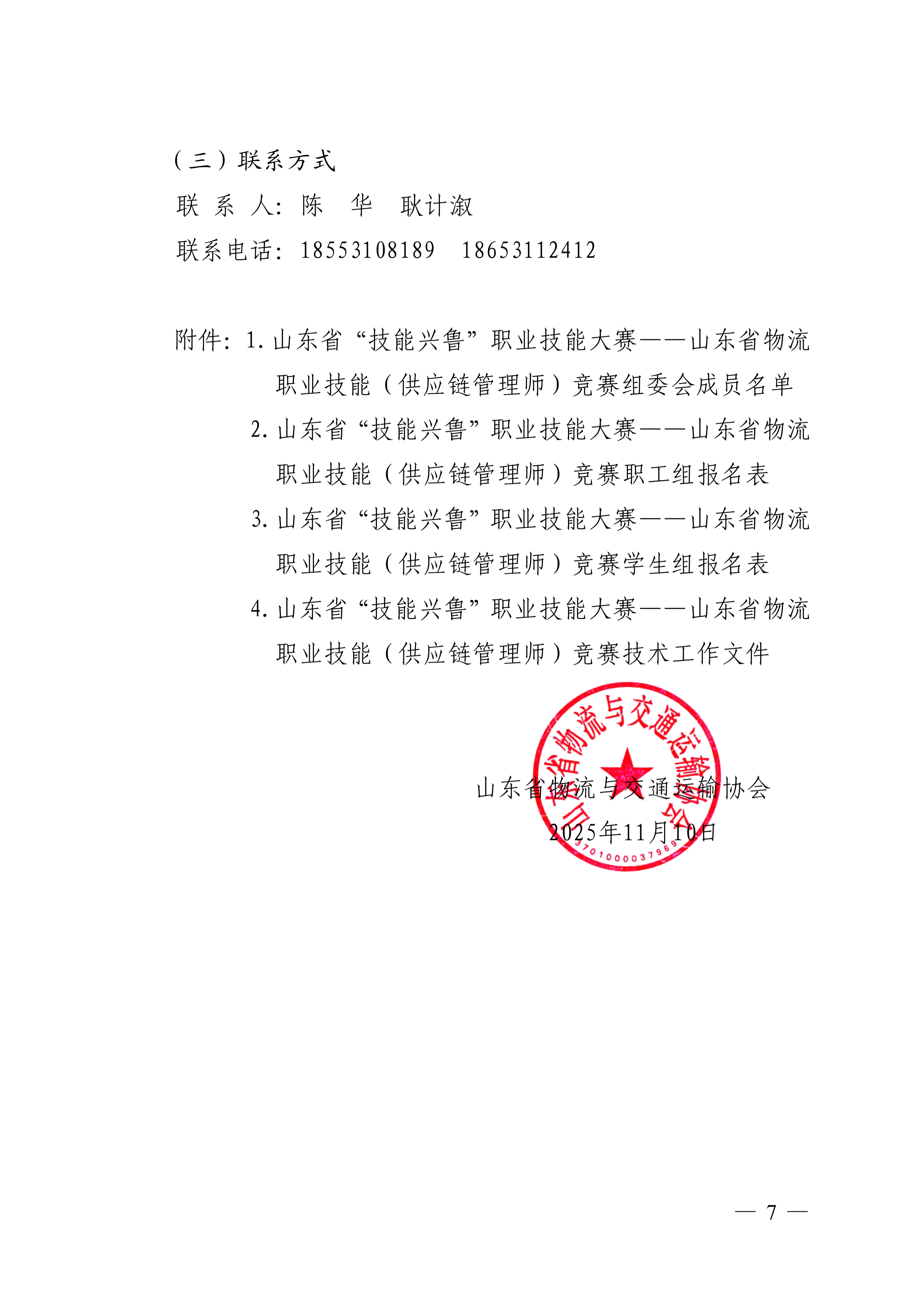 关于举办山东省技能兴鲁职业技能大赛山东省物流职业技能(供应链管理师)竞赛的通知