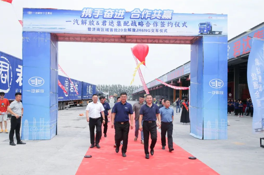 7月1日,是建党103周年纪念日。在这个特殊的日子里,君达集配隆重举行“携手奋进,合作共赢——一汽解放&君达集配战略合作签约仪式暨济南区域首批20台解放JH6NG交车仪式”活动。